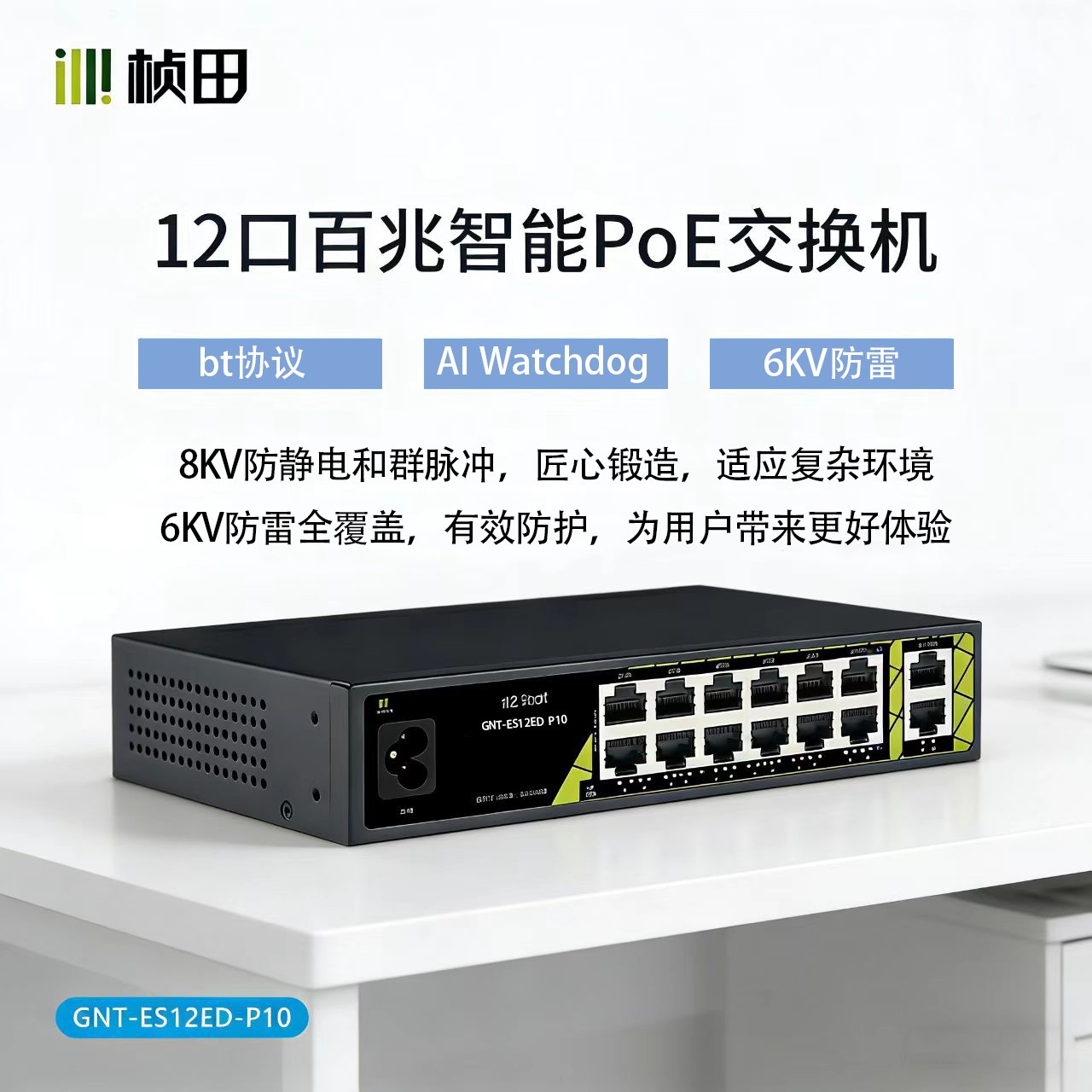 桢田10+2百兆POE交换机 GNT-ES12ED-P10