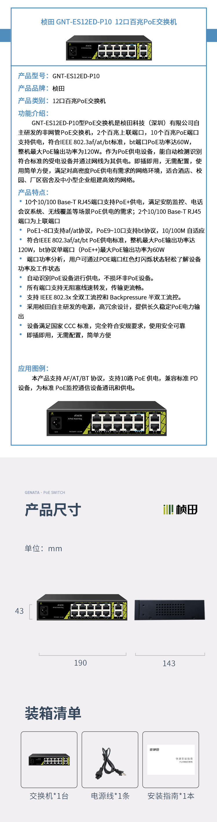 首页> 网络通讯> 交换机> 帧田> 桢田10+2百兆POE交换机 GNT-ES12ED-P10