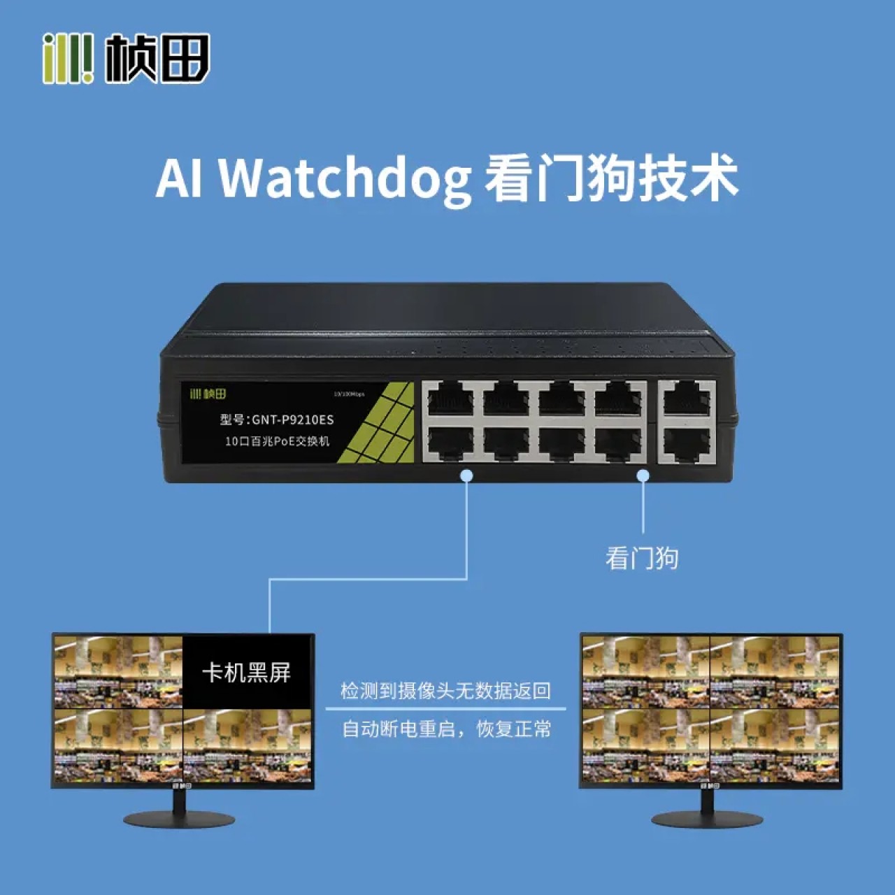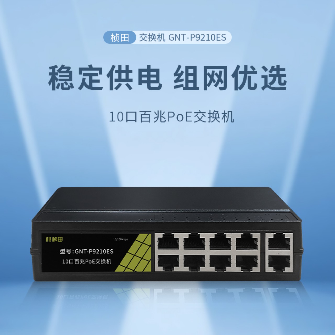 10口百兆POE交换机(2E+2EP6+6EP/120W)塑铝外壳GNT-P9210ES