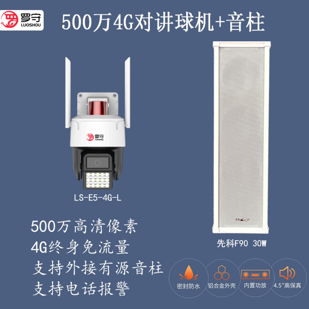 罗守5寸500万外接喇叭4G免流量球机 LS-E5-4G-L 5寸大外观4G终身免流量球机,支持外接有源喇叭,音柱等设备,声音大,音频效果好,更清晰。音柱可自选!摄像机质保2年换新,音柱质保1年。