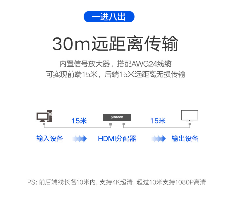 - 绿联 hdmi延长器网络传输150米转网口高清音视频监控工程 CM340